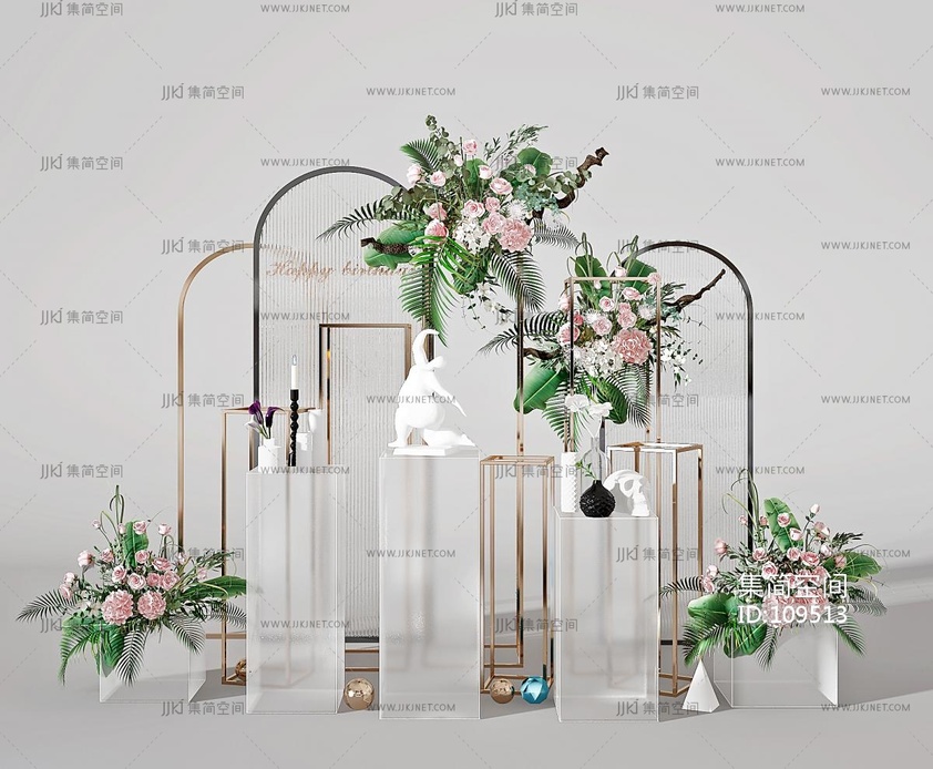 现代花艺玫瑰花装饰摆件,美陈,橱窗 3d模型下载 [模型ID:109513]