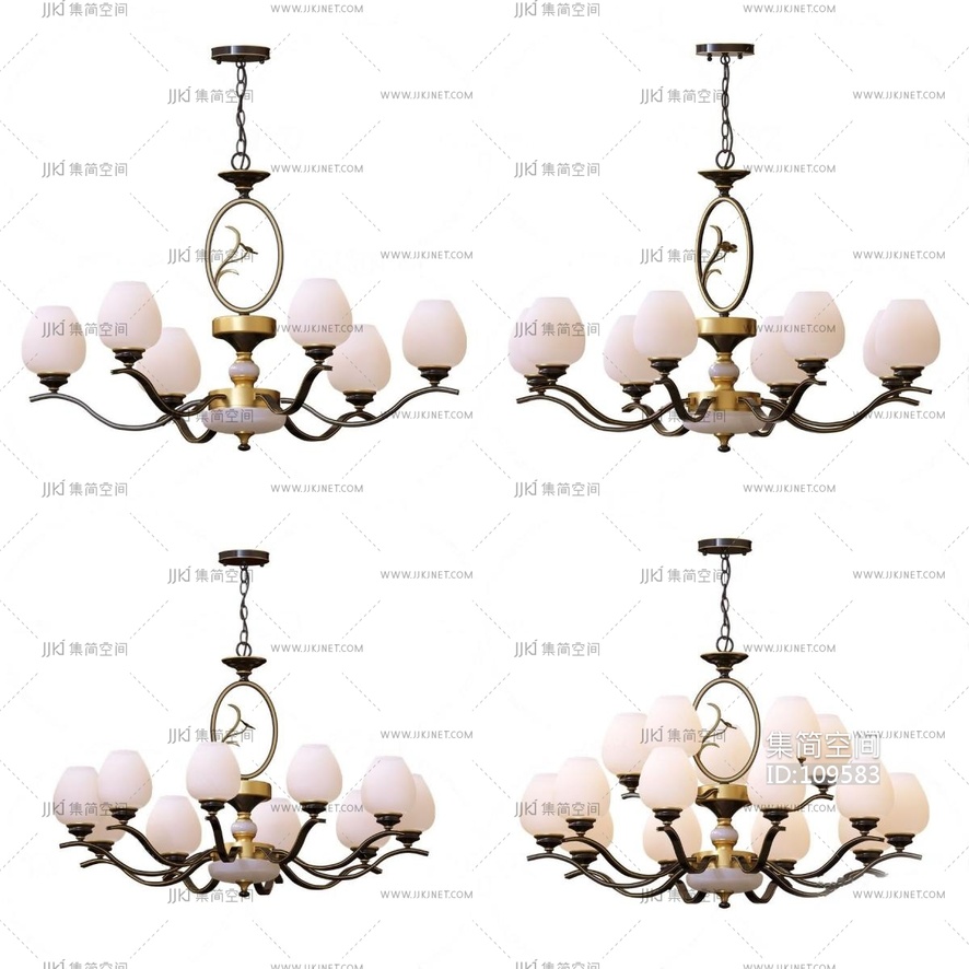 新中式铁艺多头吊灯 3d模型下载 [模型ID:109583]
