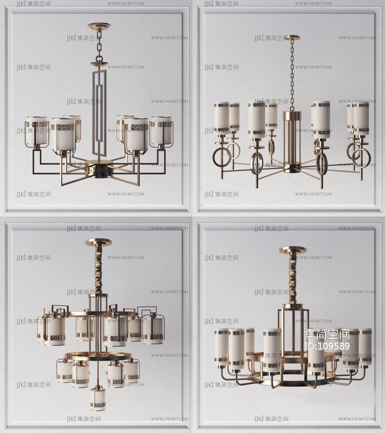 新中式铁艺吊灯 3d模型下载 [模型ID:109589]
