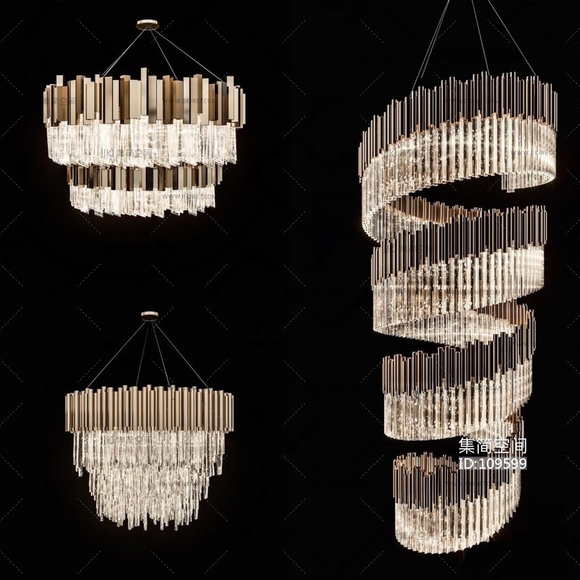 现代水晶吊灯吸顶灯3D模型3d模型下载