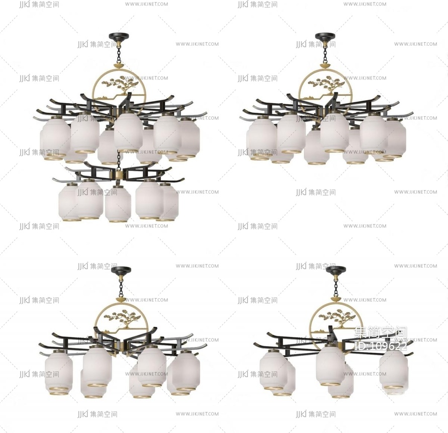 新中式金属铁艺多头吊灯 3d模型下载 [模型ID:109622]