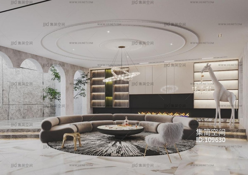 现代轻奢客厅 3d模型下载 [模型ID:109630]
