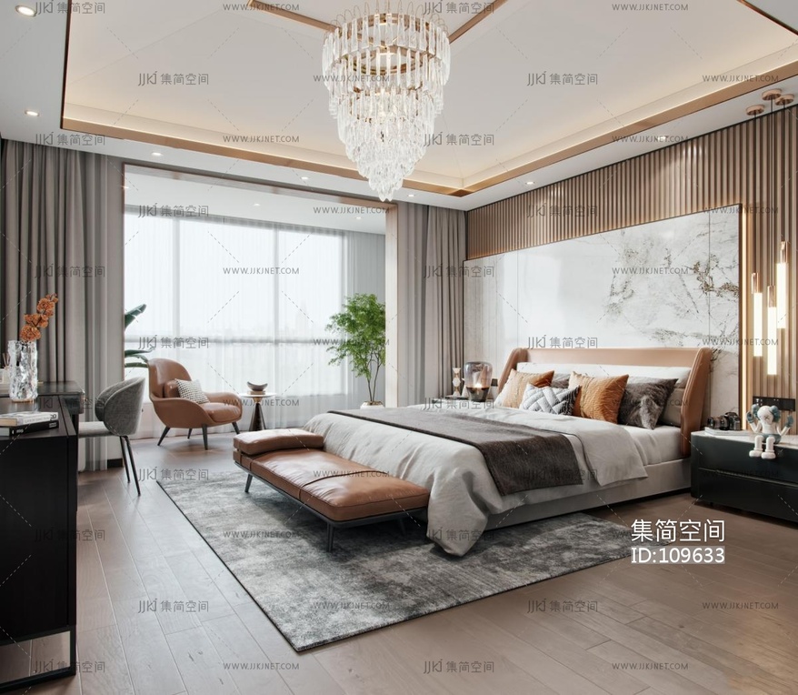 现代轻奢主卧室 3d模型下载 [模型ID:109633]