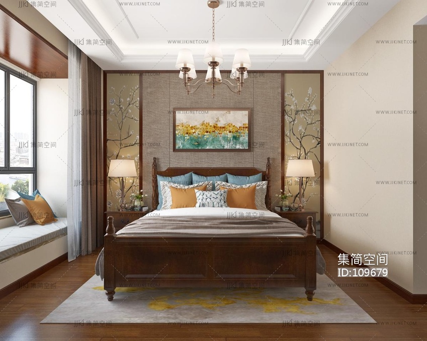 6法式中古家居卧室_主卧_飘窗卧室_高级灰卧室3D模型cr3d模型下载
