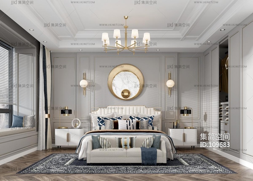6法式中古家居卧室_主卧_飘窗卧室_高级灰卧室3D模型cr3d模型下载