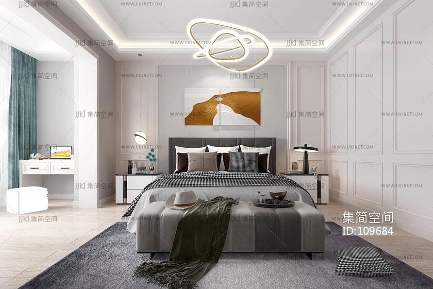 现代轻奢卧室, 3d模型下载 [模型ID:109684]