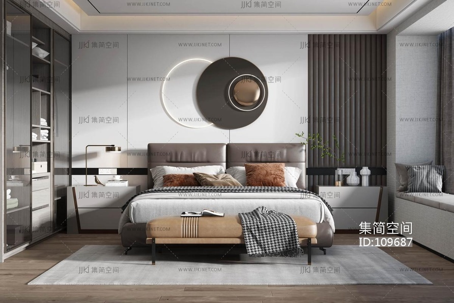 13-现代卧室,现代双人床包包皮包展示柜床头柜3d模型下载