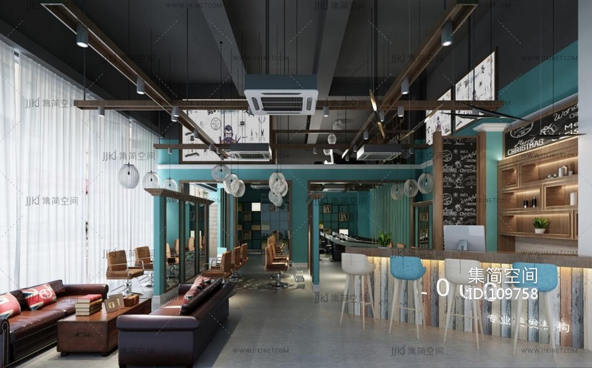 工业风理发店,美发店 3d模型下载 [模型ID:109758]