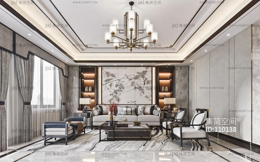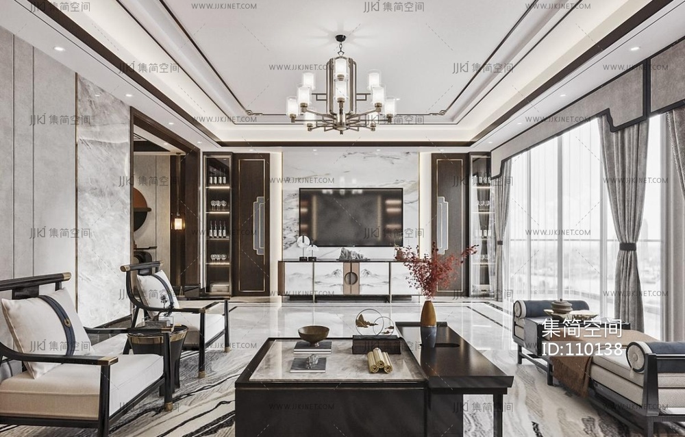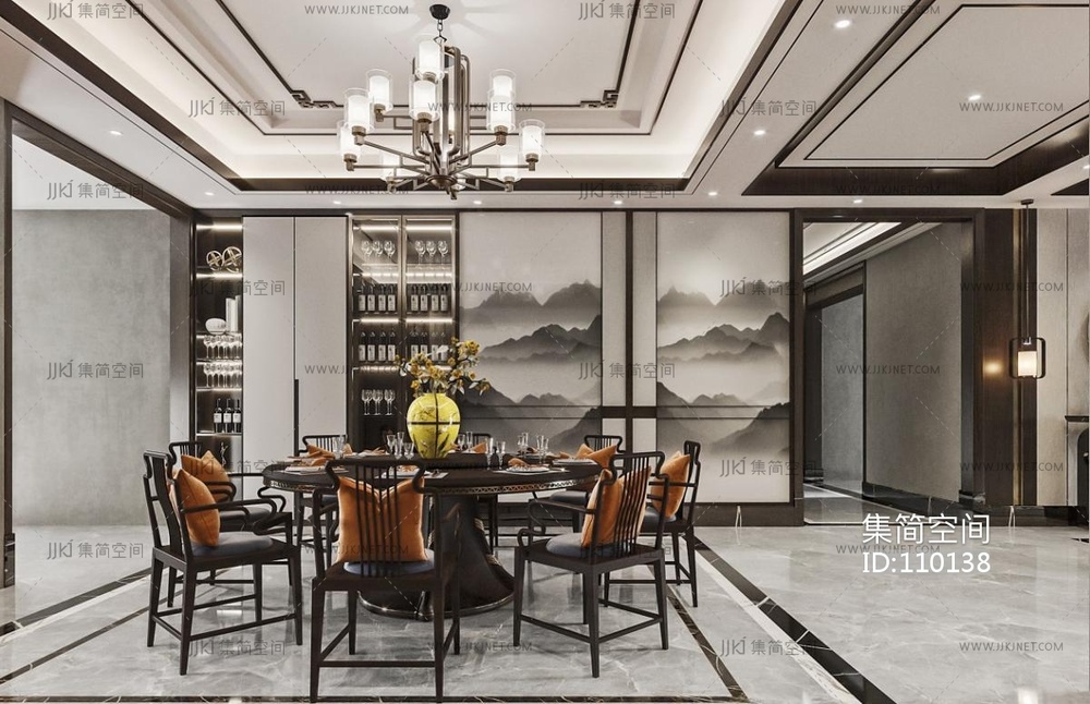 新中式轻奢客厅餐厅 3d模型下载 [模型ID:110138]