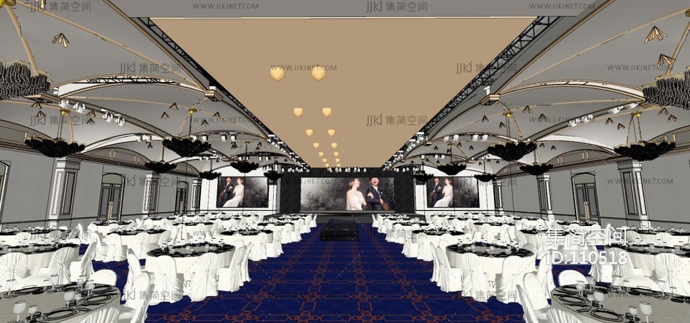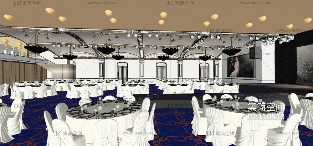 欧式法式穹顶宴会厅, su草图模型下载 [模型ID:110518]