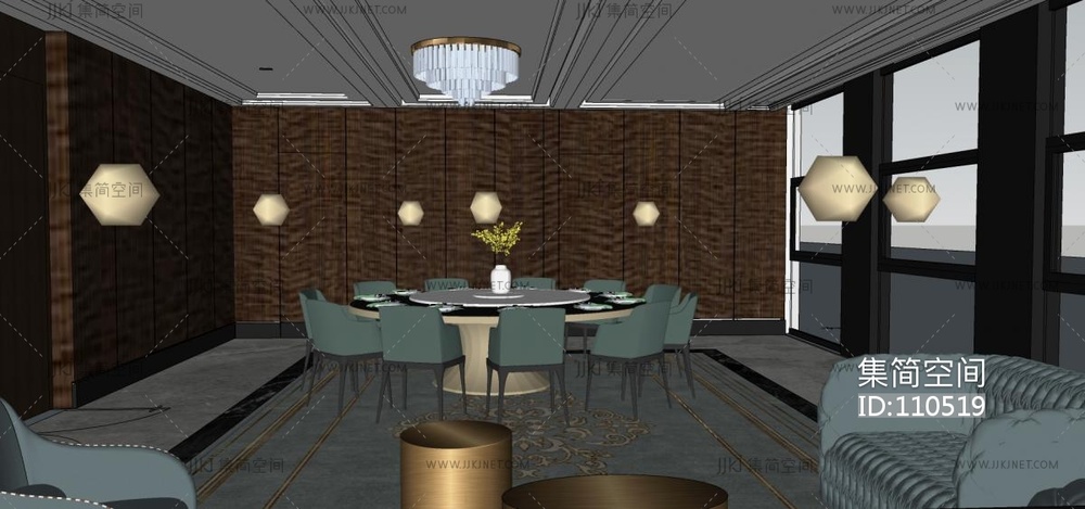 现代风格会议室 su草图模型下载 [模型ID:110519]
