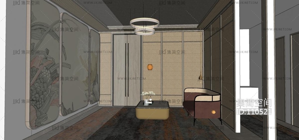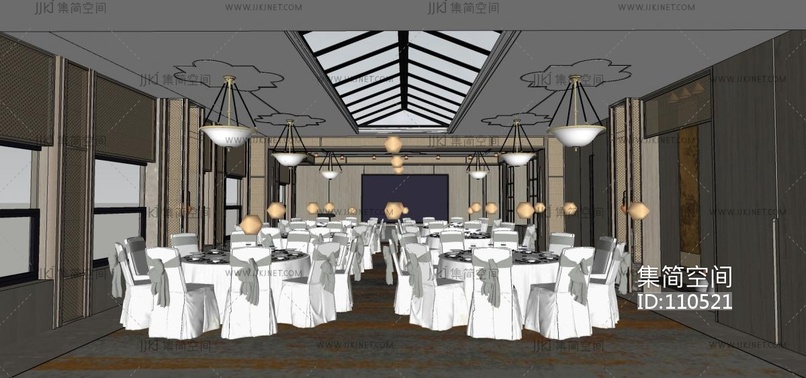 01新中式酒店宴会厅,宴会桌椅 (1) su草图模型下载 [模型ID:110521]