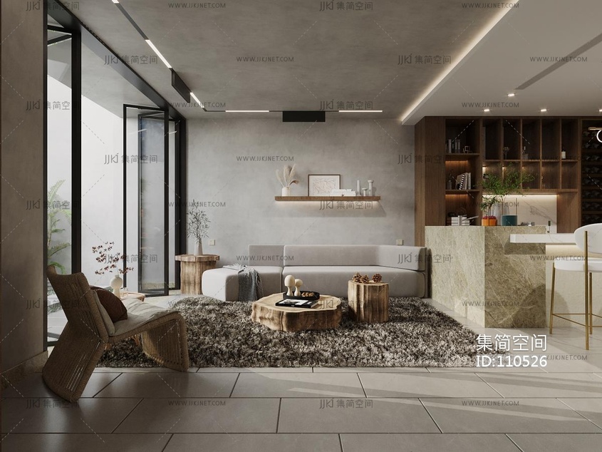 侘寂风客厅 3d模型下载 [模型ID:110526]