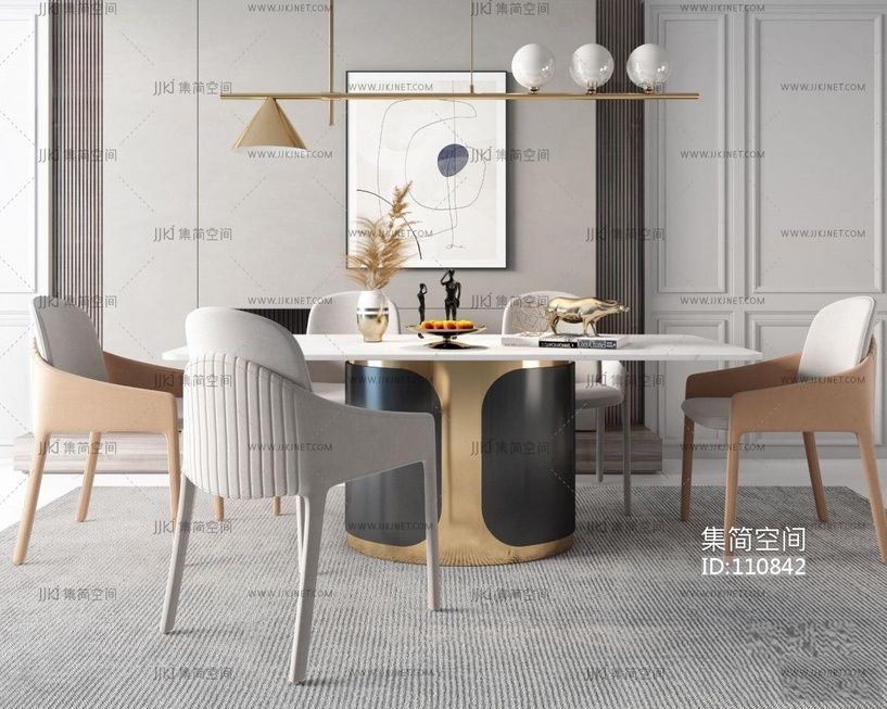 现代轻奢大理石餐桌椅 3d模型下载 [模型ID:110842]