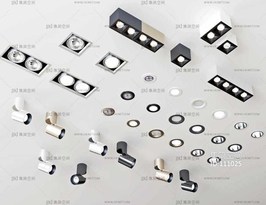 现代明装筒灯,射灯,斗胆灯灯 3d模型下载 [模型ID:111025]
