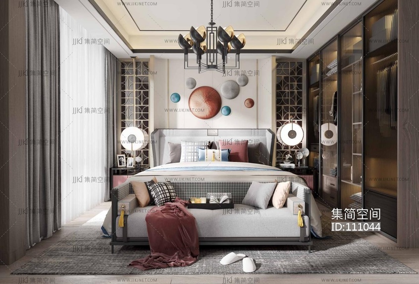 新中式卧室 3d模型下载 [模型ID:111044]