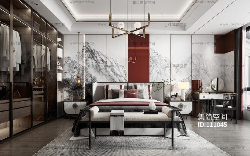 卧室,轻奢,暗黑风,现代轻奢卧室双人床,懒人沙发法式卧室3d模型下载