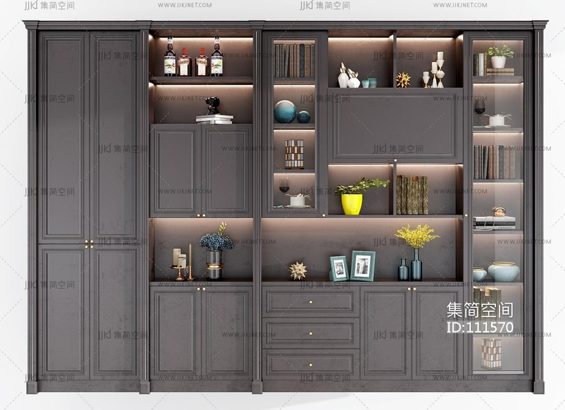 美式欧式装饰柜,餐边柜,展示柜,书柜 3d模型下载 [模型ID:111570]