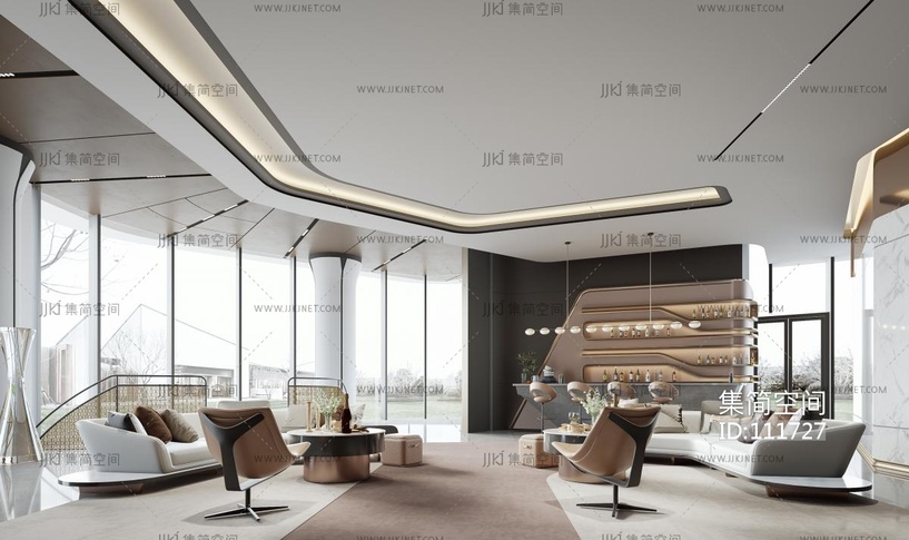 新中式售楼处入口大堂服务太接待台3D模型3d模型下载