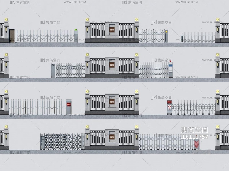 现代电动伸缩门_自动收缩门__学校推拉收缩_收费杆_闸机3D模型3d模型下载