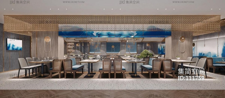 新中式餐厅包厢 3d模型下载