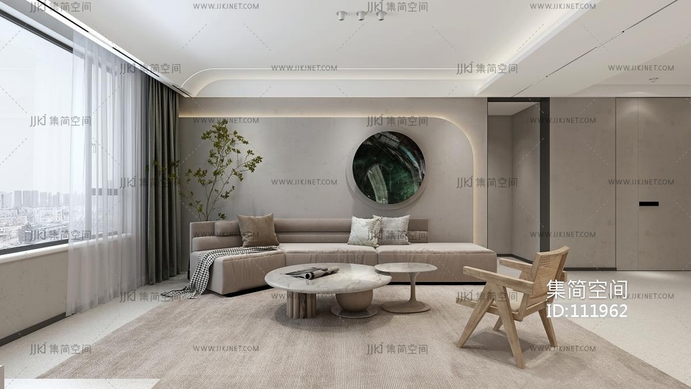 中古风客厅,美式客厅,圆形茶几,装饰画,移动电视,3d模型下载