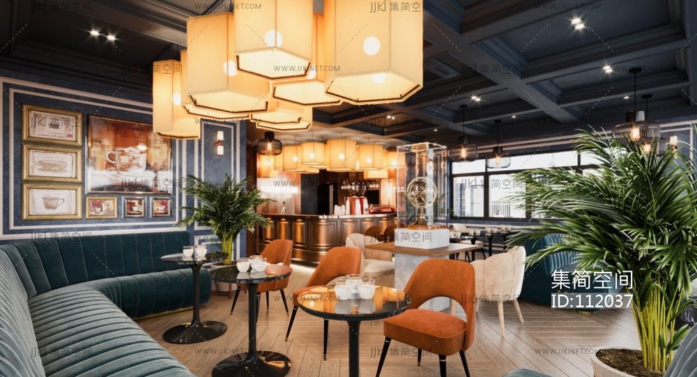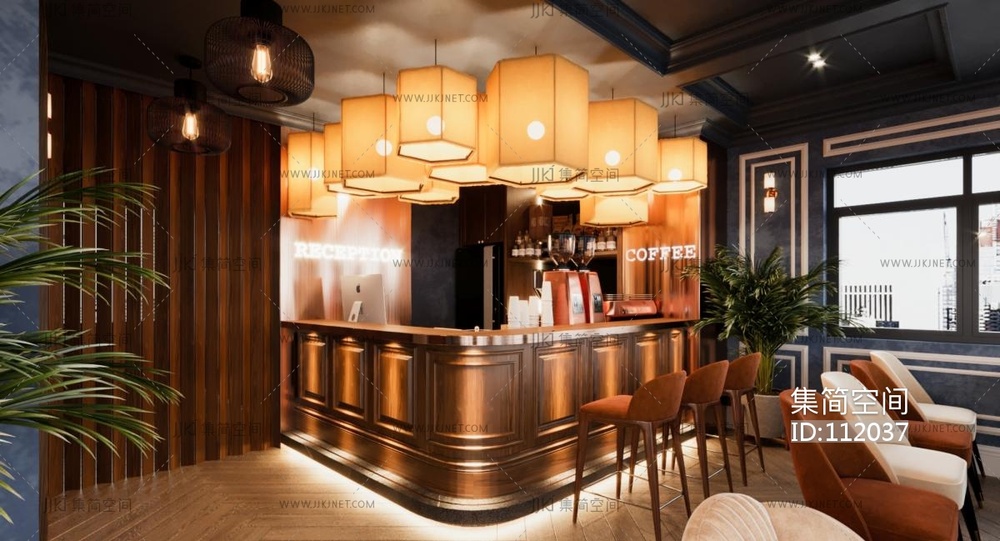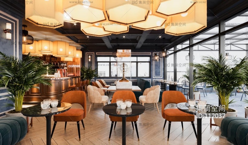 现代中古风咖啡厅 3d模型下载