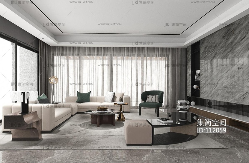 现代高级灰客厅,沙发茶几,弧形座椅 3d模型下载 [模型ID:112059]