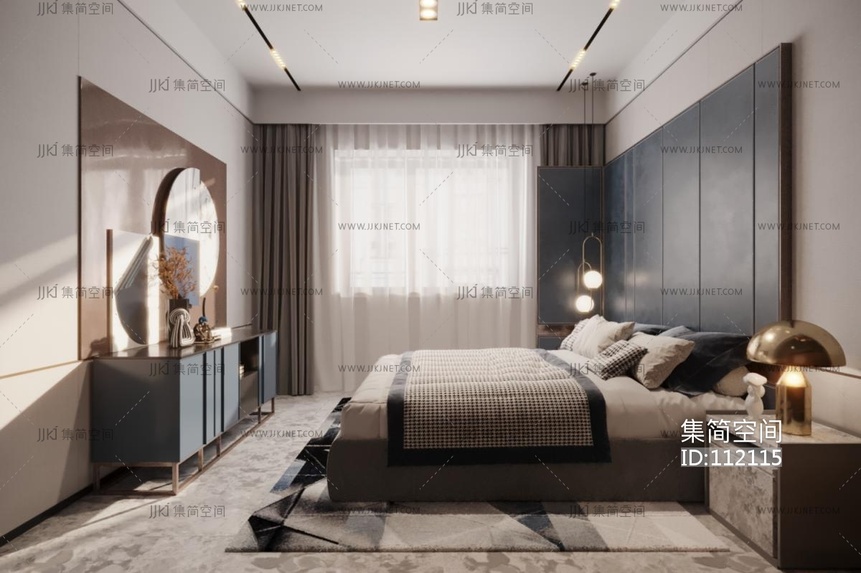 6法式中古家居卧室_主卧_飘窗卧室_高级灰卧室3D模型cr3d模型下载
