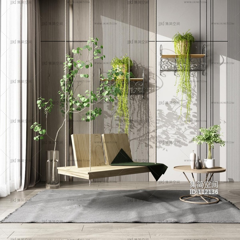 现代玻璃吊椅,边几,盆栽3d模型下载