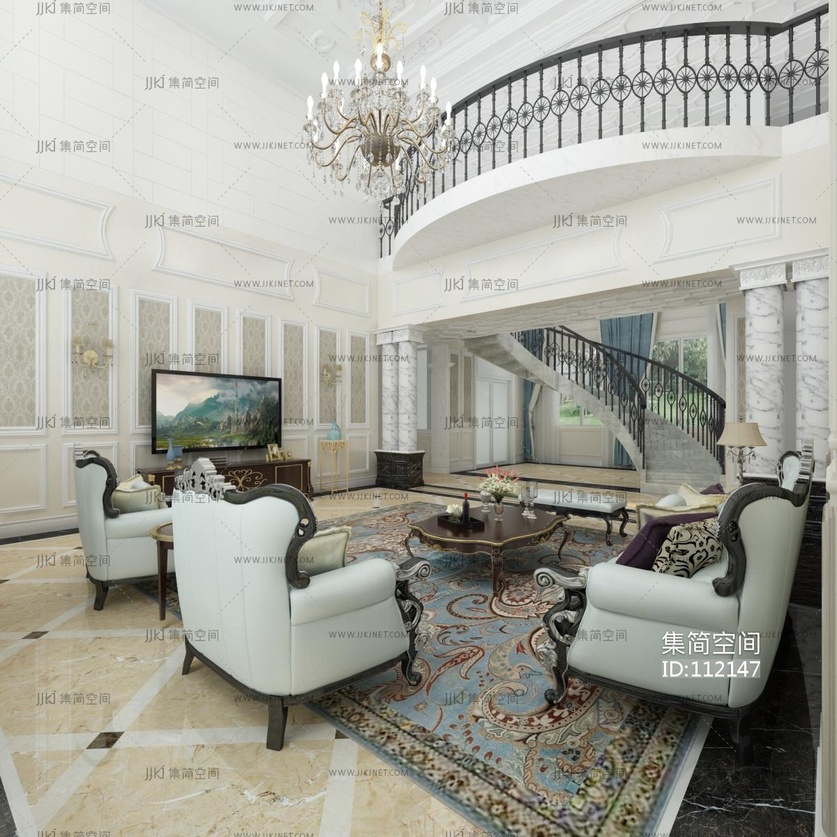 欧式别墅客厅 3d模型下载 [模型ID:112147]
