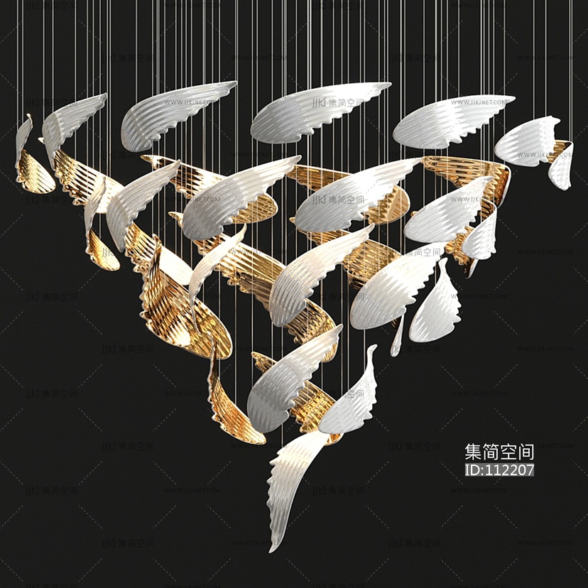现代羽毛翅膀吊灯 3d模型下载 [模型ID:112207]