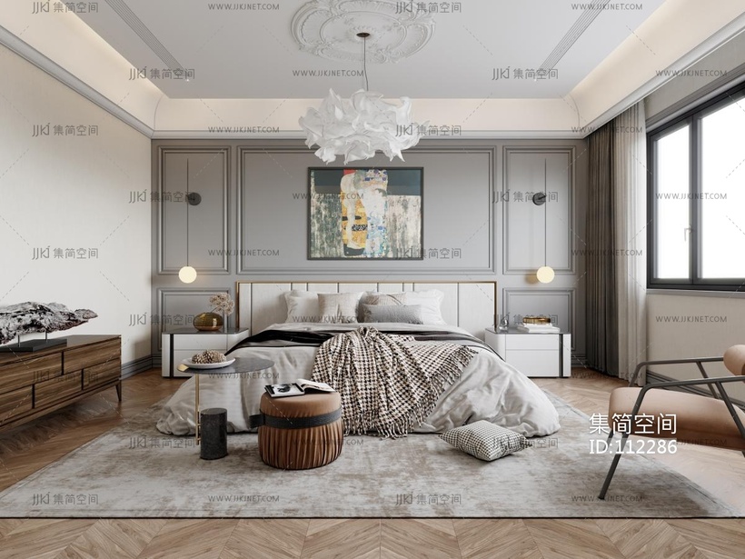 6法式中古家居卧室_主卧_飘窗卧室_高级灰卧室3D模型cr3d模型下载