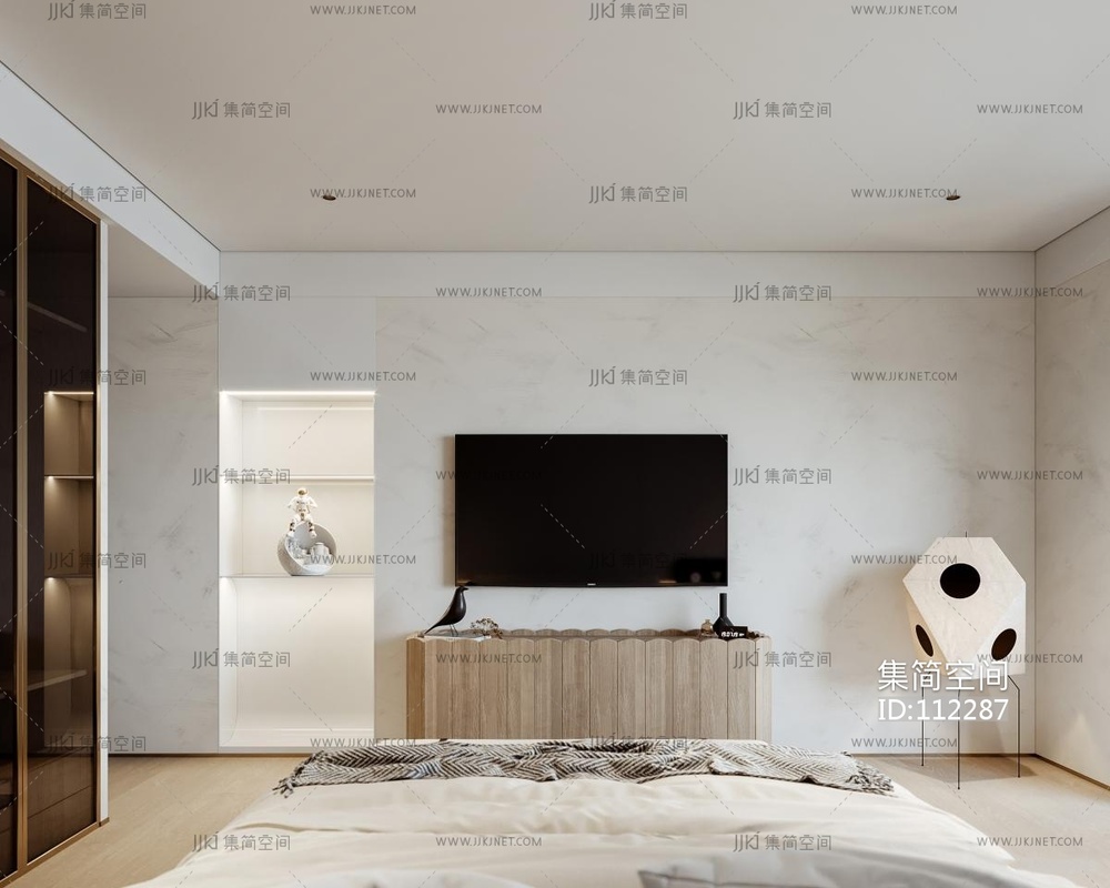 卧室,轻奢,暗黑风,现代轻奢卧室双人床,懒人沙发法式卧室3d模型下载