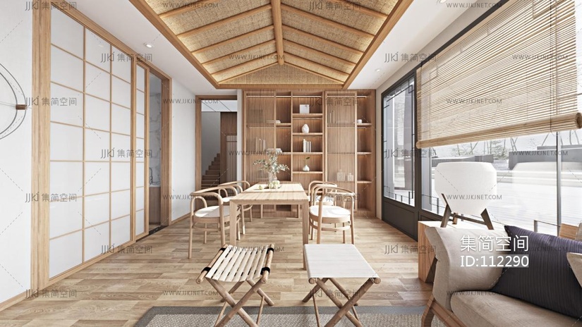 日式客厅餐厅 3d模型下载 [模型ID:112290]