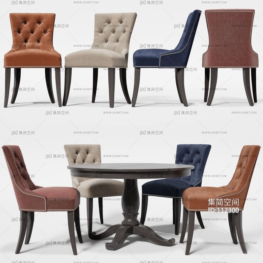 欧式实木圆形桌椅组合 3d模型下载 [模型ID:112300]