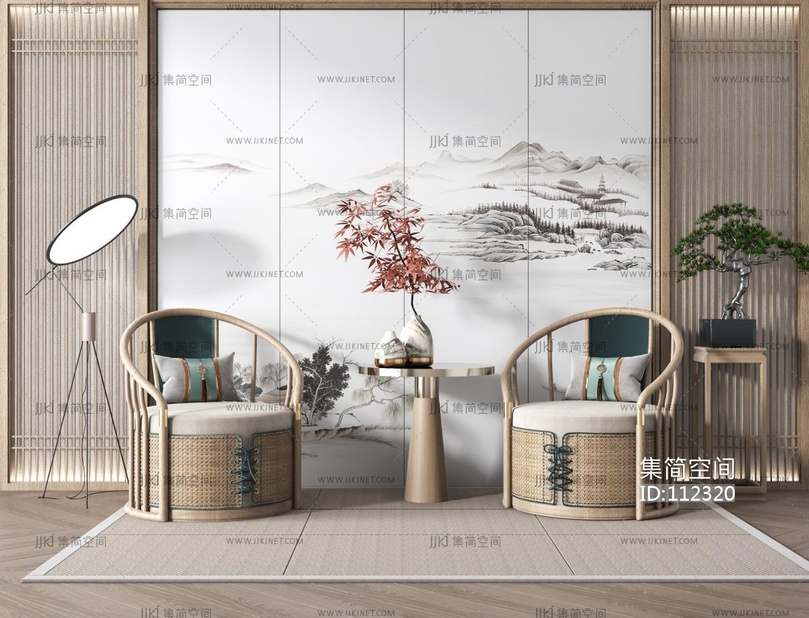 新中式单人沙发 3d模型下载 [模型ID:112320]