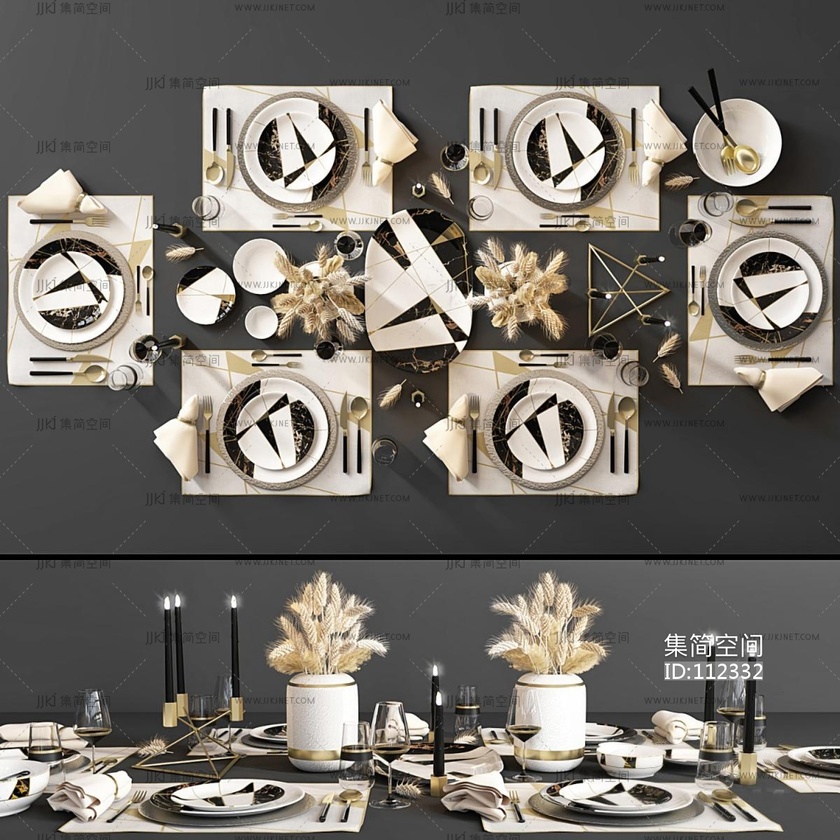 现代轻奢餐具摆盘 3d模型下载 [模型ID:112332]