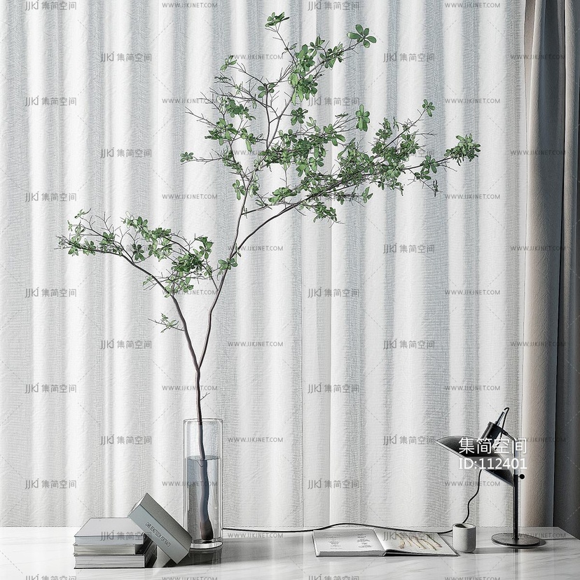 现代玻璃花瓶书本水生植物 3d模型下载 [模型ID:112401]