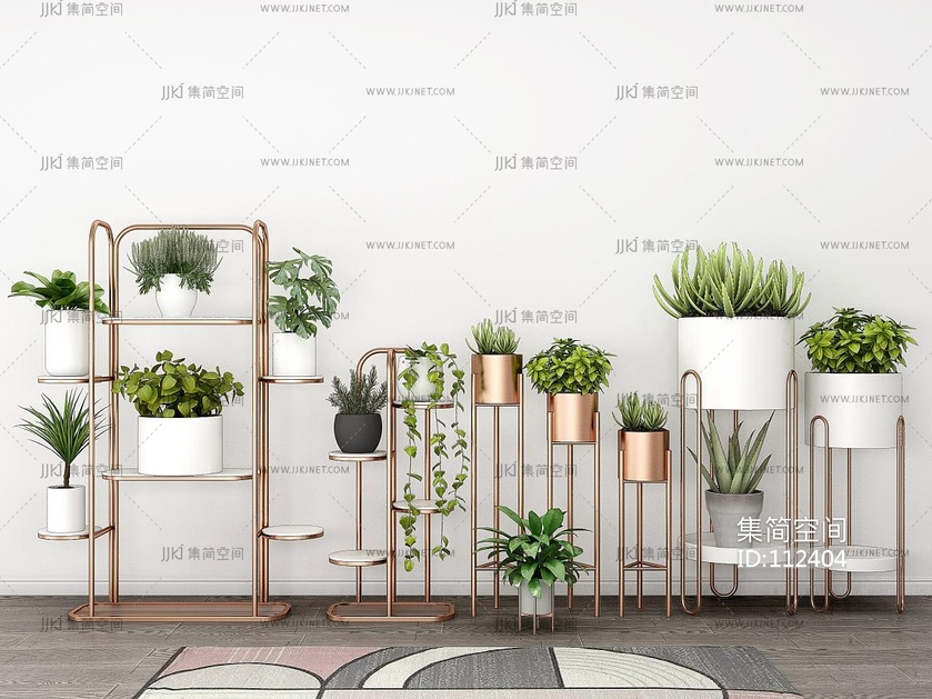 现代金属花架盆栽绿植,花盆,阳台绿植 3d模型下载 [模型ID:112404]