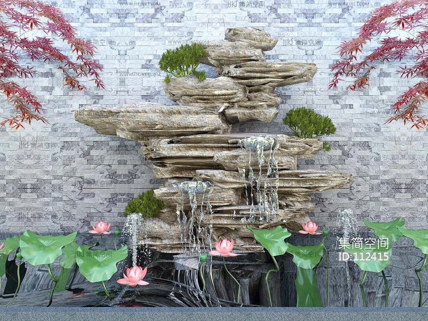 新中式景观小品假山荷花景观小品 3d模型下载 [模型ID:112415]