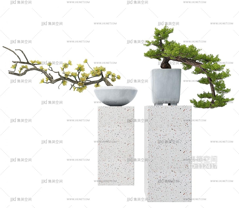 新中式植物盆栽,盆景摆件 3d模型下载 [模型ID:112417]