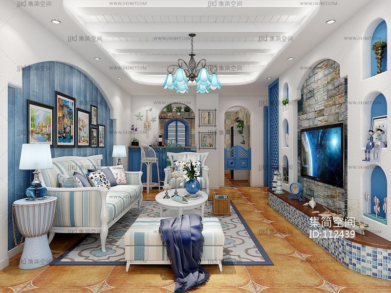 地中海客厅,沙发吊灯 3d模型下载 [模型ID:112439]