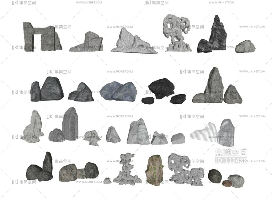 新中式石头假山石头 su草图模型下载 [模型ID:112488]
