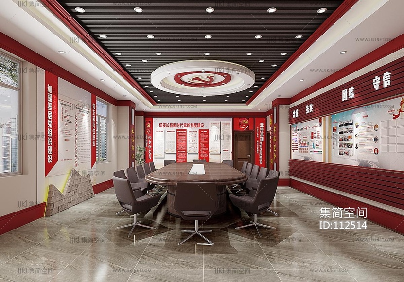 现代党建党政机关会议室 3d模型下载 [模型ID:112514]