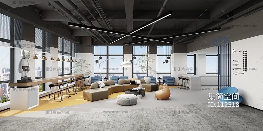 现代联合办公室,办公休息区 3d模型下载 [模型ID:112518]