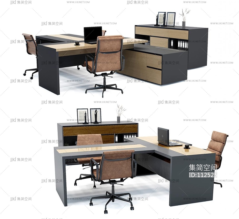 现代办公桌椅,老板台,班台,员工工位 3d模型下载 [模型ID:112525]