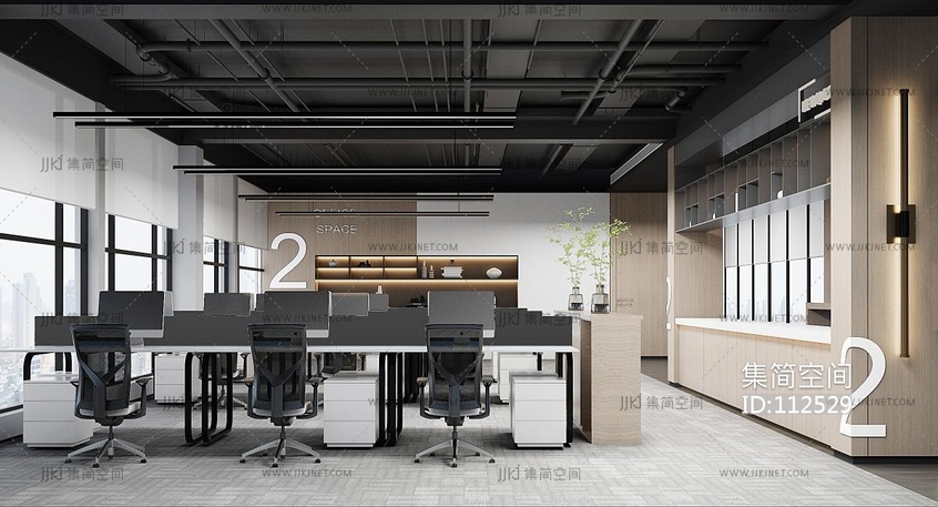 现代敞开式办公室,员工工位 3d模型下载 [模型ID:112529]