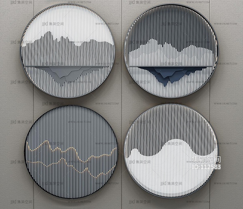 新中式墙饰挂件,圆形挂画 3d模型下载 [模型ID:112583]