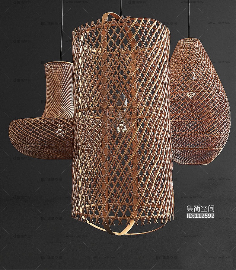侘寂自然风民宿藤编编织竹编吊灯 3d模型下载 [模型ID:112592]
